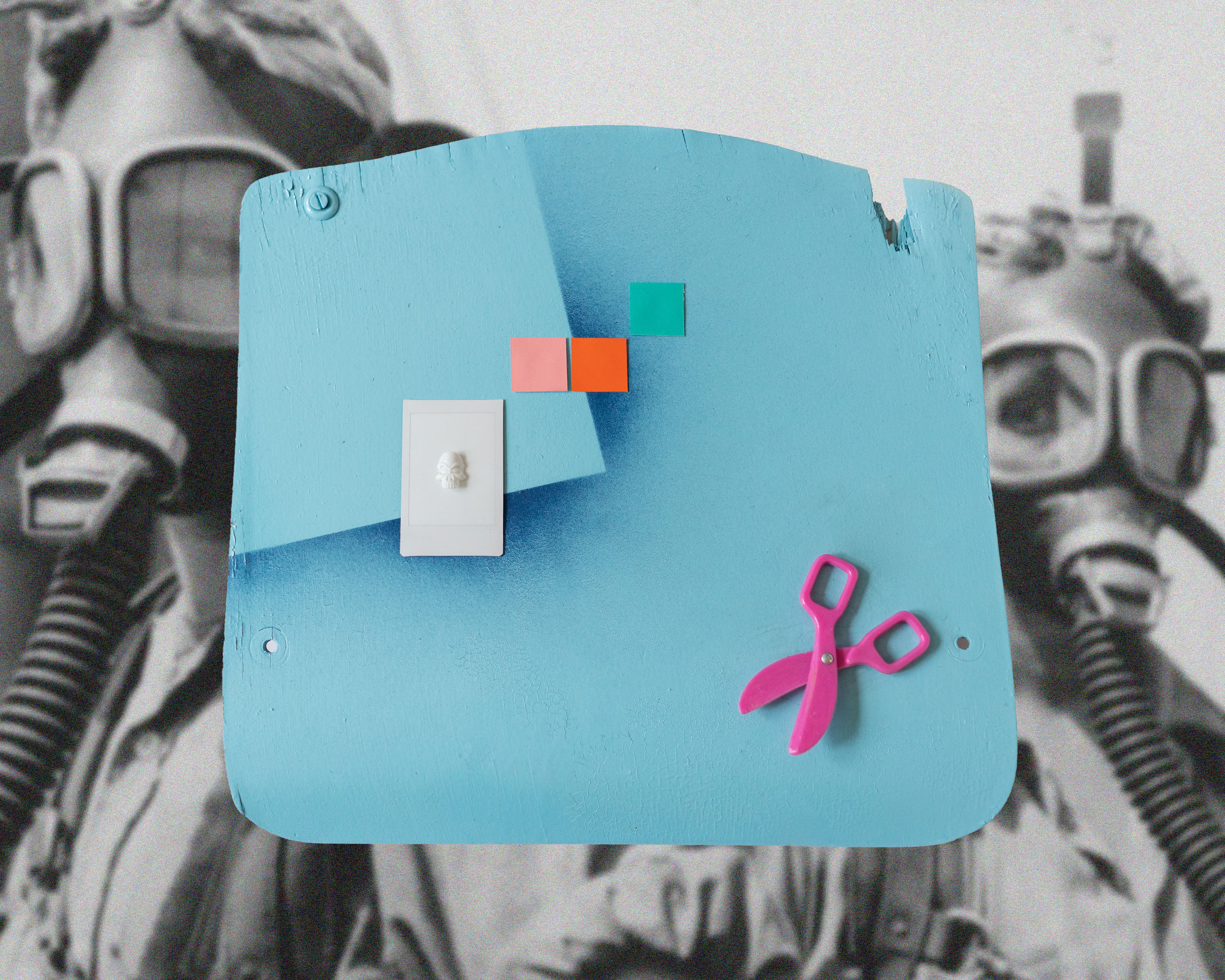 Mixed Media Collage (wood, paper, paint, found objects, film)